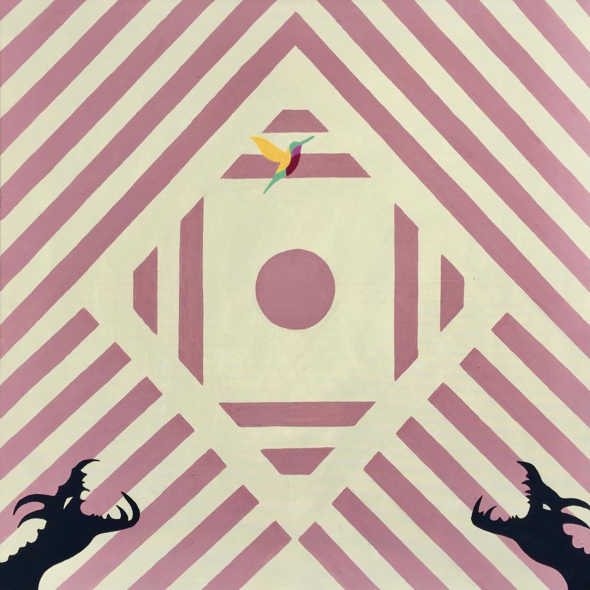In questa immagine, ho giocato con forme geometriche e linee pulite per creare un equilibrio tra ordine e simbolismo. La presenza contrastante del piccolo e colorato colibrì simboleggia speranza e leggerezza, in mezzo alla struttura austera, quasi minacciosa dei suoi artigli scuri. L'intento è quello di portare energia di resistenza e libertà nello spazio e visualizzare un momento di riconciliazione tra gli opposti.